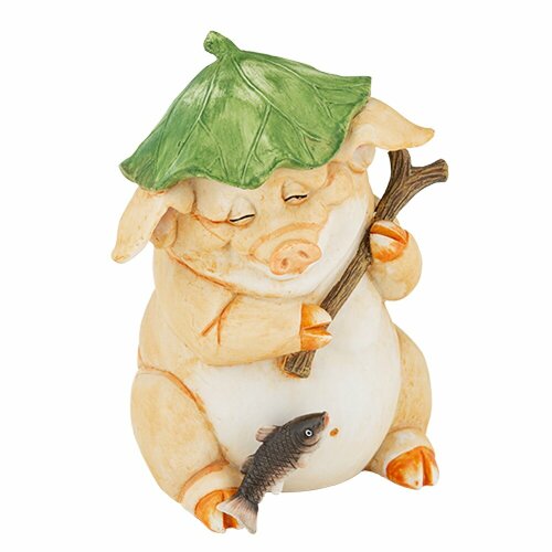Фигурка садовая из полистоуна "Свинка рыбак"