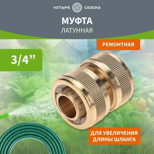 Муфта соединительная латунная, ремонтная, для шланга, 3/4" четыре сезона