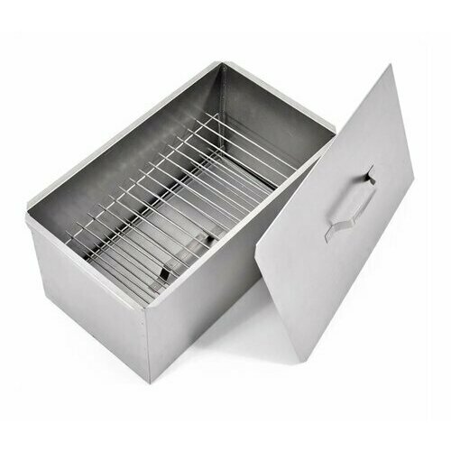 Коптильня на щепе КЕДР плюс двухъярусная с гидрозатвором и поддоном для сбора жира, 19х49х29 см серебристый