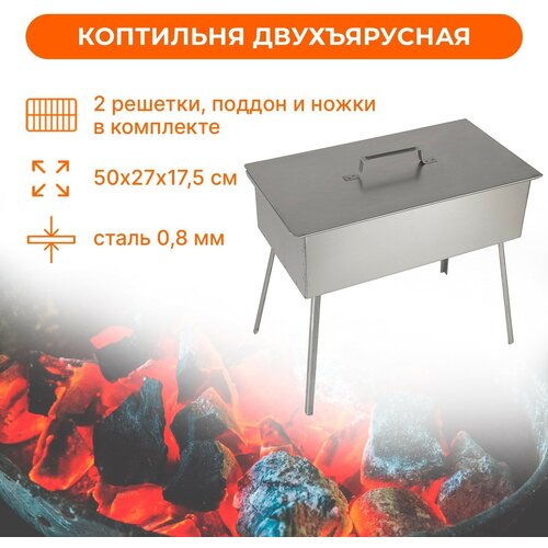 Коптильня двухъярусная на ножках, 500х270х175; сталь 0,8 мм К2-0.8БПн