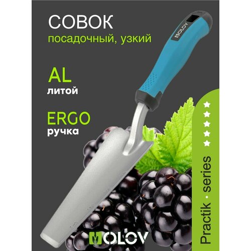Совок садовый металлический посадочный узкий алюминиевый `OLOV Практик`, 33.5х6