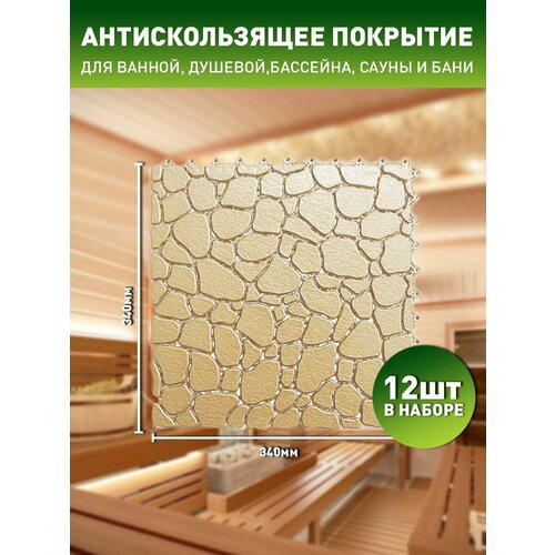 Коврик антискользящий для ванны, бассейна, сауны, бани - Aqua Stone, 12 модулей, беж (RAL 1019)