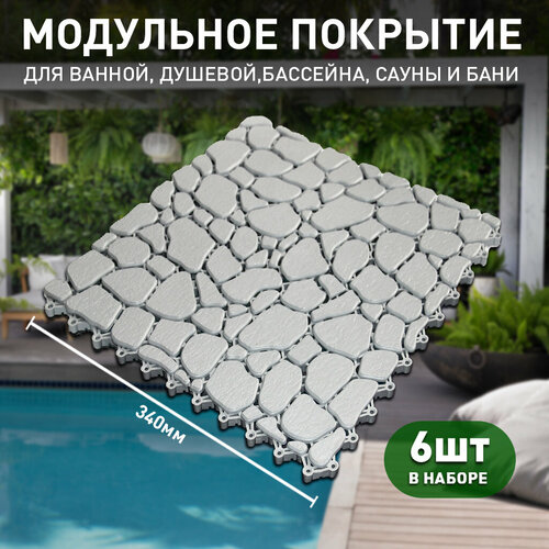 Коврик для ванны, бассейна, сауны, бани антискользящий, Aqua Stone, 6 модулей