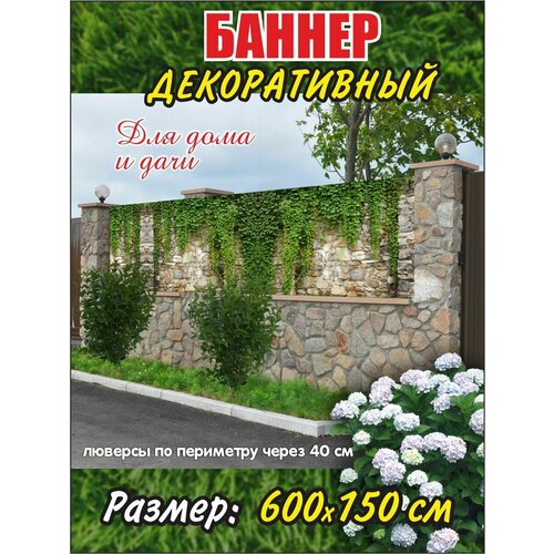 Декоративный баннер для забора, беседки , 600 см х 150 см с люверсами