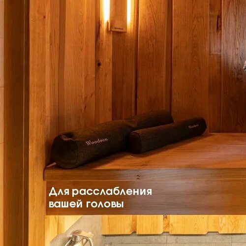 Валик ортопедический массажный для головы в баню и сауну Woodson с наполнителем из лузги гречихи и двумя чехлами защитным и водонепроницаемым, 45х11 см