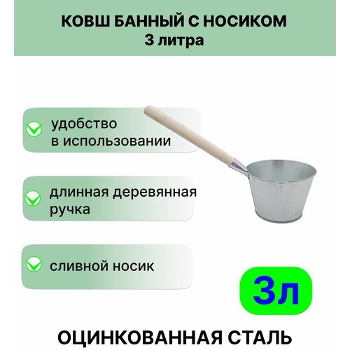 Ковш для бани и сауны, оцинкованный ковшик с длиной ручкой, 1,5л
