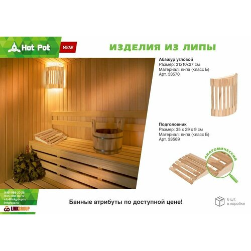 Подголовник для бани и сауны, анатомический из дерева липы, 32*29*9,5 см