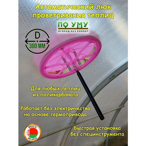 Термопривод для теплиц340 х 300мм , Форточка для теплицы, Цвет Розовый, Диаметр 300 мм.