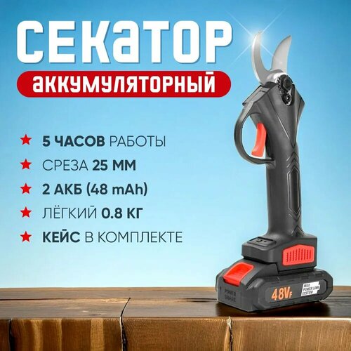 Секатор аккумуляторный садовый сучкорез 25мм, 2 АКБ в кейсе