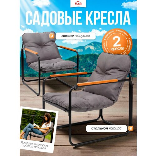 Кресло садовое Luxury комплект 2 шт, стул садовый с подлокотниками, для дачи, террасы и сада, стальной каркас Ами мебель