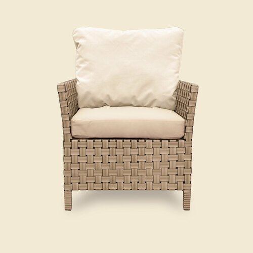 Кресло к набору Монте-Карло арт. MK-MT005-2024 (каркас черный, ротанг жемчуг, ткань полоска) (В)
