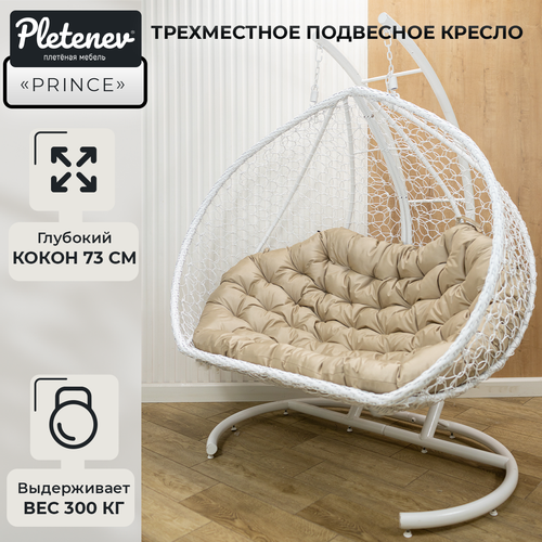 Подвесное кресло Prince трехместное белое с бежевой водоотталкивающей подушкой