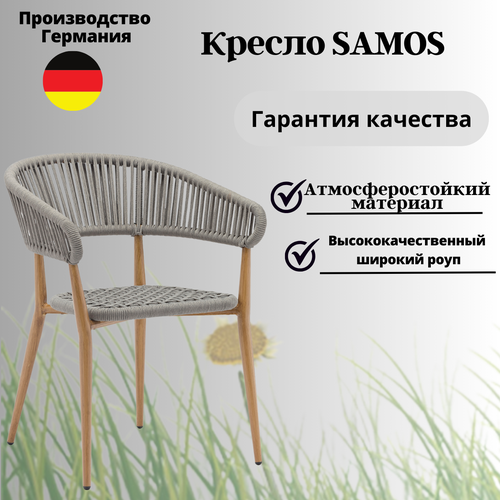 Кресло Konway Samos, алюминий имитация дерева + роуп серый