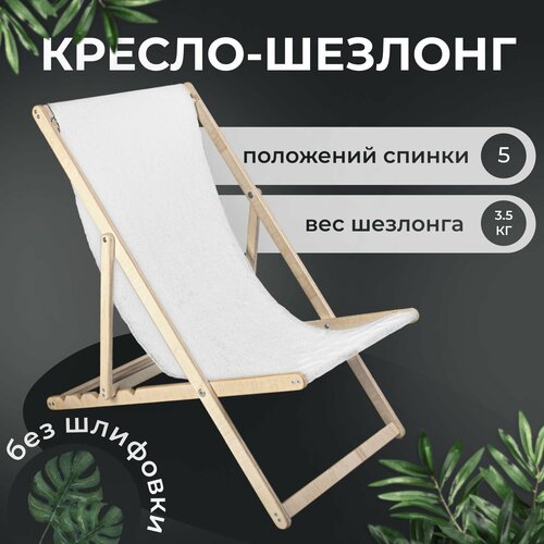 Кресло-шезлонг "Березка" без шлифовки с белой тканью складной для дома и для дачи
