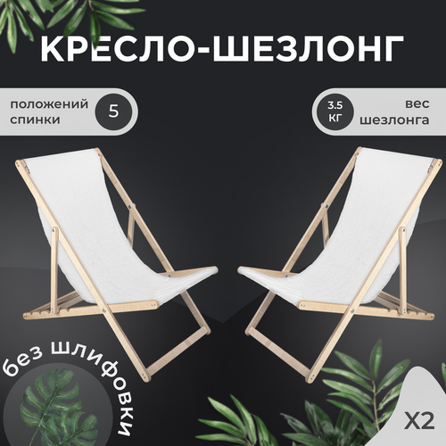 Кресло-шезлонг "Березка" с белой тканью без шлифовки складной для дома и дачи, комплект 2 шт