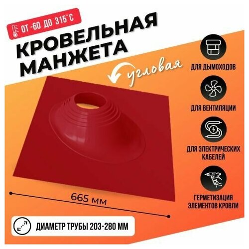 Кровельный уплотнитель дымохода угловой № 2 силикон 203-280 mm красный