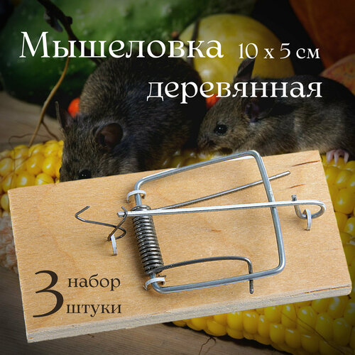 Деревянная мышеловка, малая, размер, 100x50x15 мм, 2 шт, легко приводится в состояние готовности. Подойдет для отлова мышей и крыс в жилых и нежилых помещениях, на прилегающих к ним территориях.