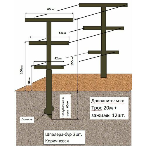 Шпалера-бур 2шт. Цвет венге. Высота 1,5м. В комплекте трос 20м и зажимы. Для малины, ежевики, винограда.