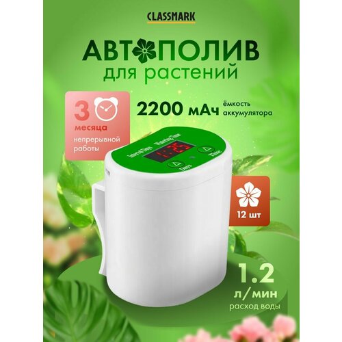 Автополив для комнатных растений и цветов до 4 горшков Classmark беспроводной 2000 мАч для дома и дачи, ЖК-дисплей, высота подъема воды до 2.5 м и автономная работа до 3 месяцев