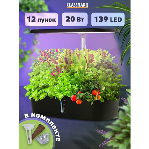 Умный сад с LED фитолампой, таймером и автополивом Classmark, гидропоника, гидропонная система для выращивания растений, проращиватель семян