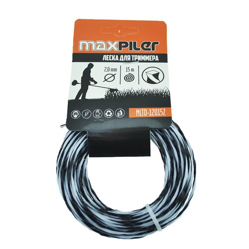 Леска для триммера квадрат крученый MaxPiler 2,0ммх15м (MLTD-12015Z) (черно-белая)