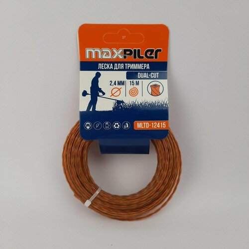 Леска для триммера 2,4 мм 45 метров, MLTD-12415 формы витой квадрат с жилой 2,4мм х 15 м, высокое качество Maxpiler