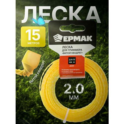 Леска для триммера сечение витой квадрат д. 2,0мм, длина 15м.(профи серия, нейлон 99%) ермак