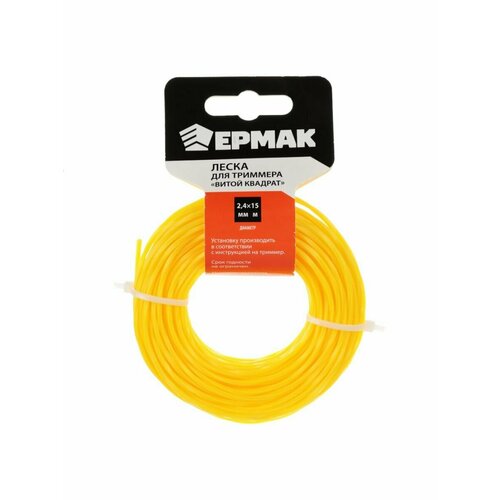 Леска для триммера квадрат с жилой (двухкомпонентная усиленная) 2,4 мм*15 м ермак