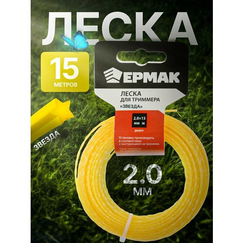 Леска для триммера сечение звезда диаметр 2,0мм, длина 15м.(профи серия, нейлон 99%) ермак