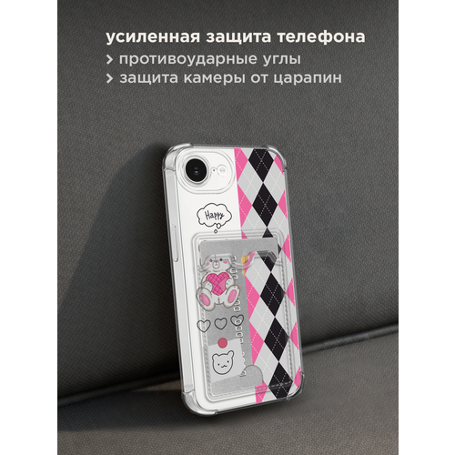 Чехол на Apple iPhone 16e (Айфон 16е) с картой и принтом Серый плюшевый мишка