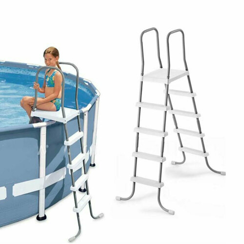 металл, ABS, пластик, ПВХЛестница для каркасных и надувных бассейнов INTEX с высотой борта до 91 см. Легко и быстро устанавливается, имеет широкий угол между сторонами, достаточный для того, чтобы не касаться стенок бассейна и в тоже время быть удобной в использовании.