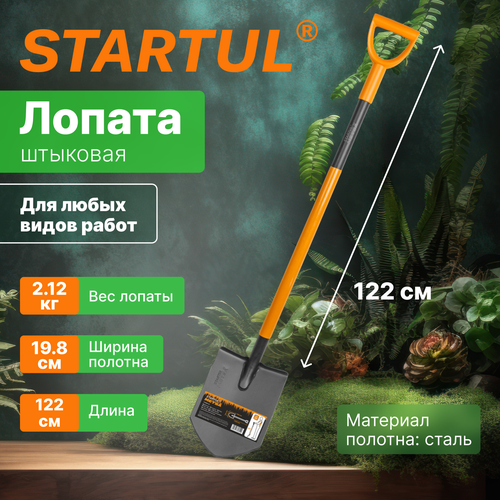 Лопата для копки штыковая металлическая STARTUL Metsa ST6080-13 с черенком 120 см оранжевый, черный