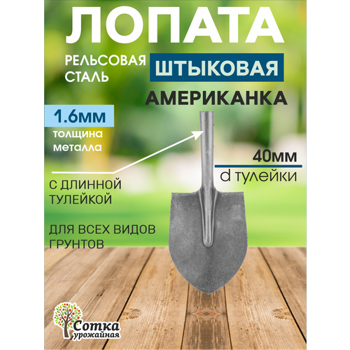 Лопата садовая штыковая ЛКО рельсовая сталь "урожайная сотка" универсальная "Американка" с крашенным деревянным черенком