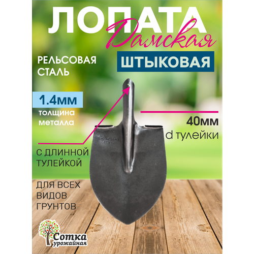 Лопата садовая штыковая рельсовая сталь женская универсальная с деревянным черенком