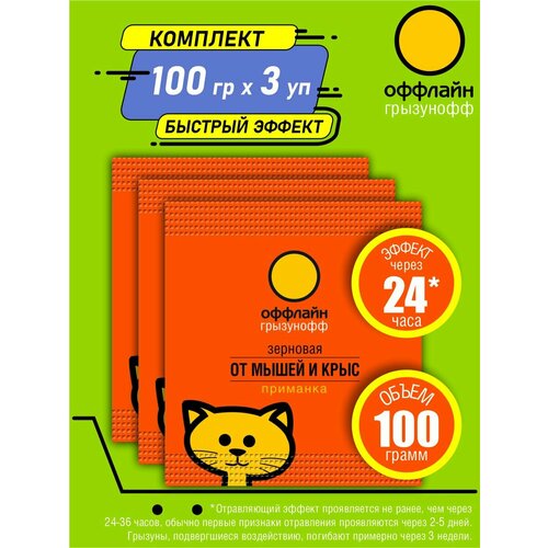 Комплект Грызунофф оффлайн Зерновая приманка от грызунов 100 гр. х 3 шт.