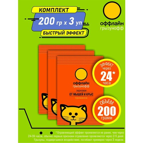 Комплект Грызунофф оффлайн Зерновая приманка от грызунов 200 гр. х 3 шт.