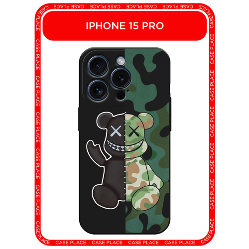 Черный матовый чехол на Apple iPhone 15 Pro / Айфон 15 Про с принтом KAWS 23 февраля 3