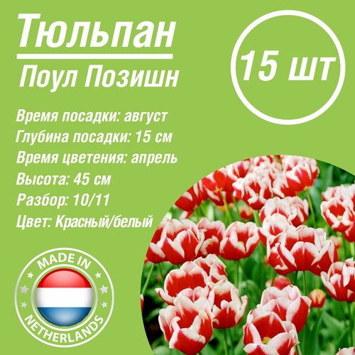 Луковица НВМ Тюльпан Поул Позишн 10/11 красно-белый 15 штук Нидерланды