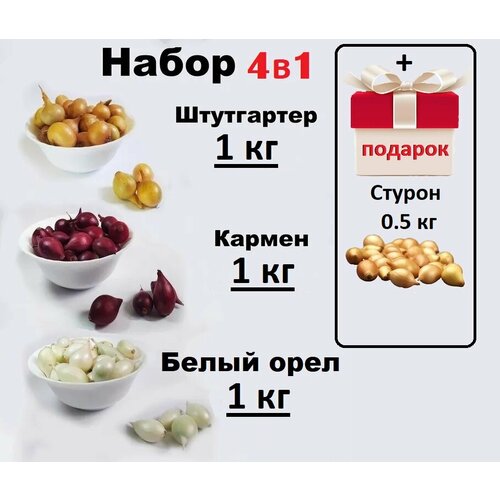 Набор Лука Севка (Белый орел, Кармен, Штуттгартер ризен) по 1кг + подарок Стурон 0.5кг
