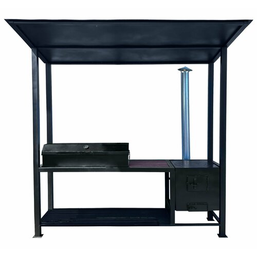 Мангал для дачи с крышей Лофт стиль с печью 4 мм 220 х 190 х 60 см с крышкой барбекю