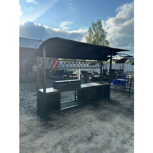 Цены на Мангал для дачи с крышей, печью и столиком Kovmangal Профессионал 230 х 190 х 150 см черный в г. Москва