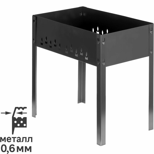 Мангал складной 3мм, МС-600, чаша 59х35х15 см, доп. ребро жесткости 10х10,11 прорезей для шампуров, Огнеупорная краска 1200С