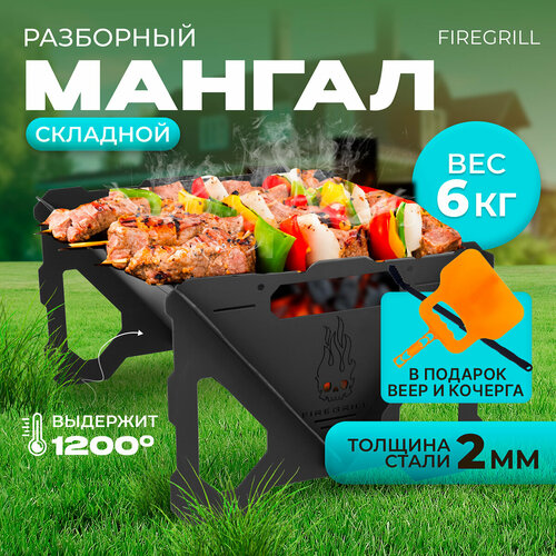Мангал FIREGRILL, складной, сборно-разборный, многоразовый, 2 мм толщина стали+веер и кочерга в подарок