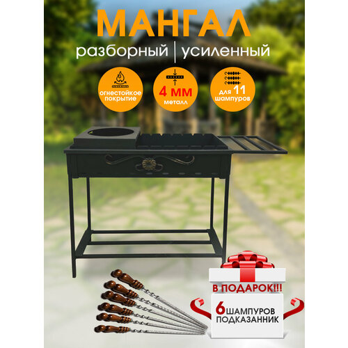 Мангал разборный, усиленный 4мм с подказанником, шампурами