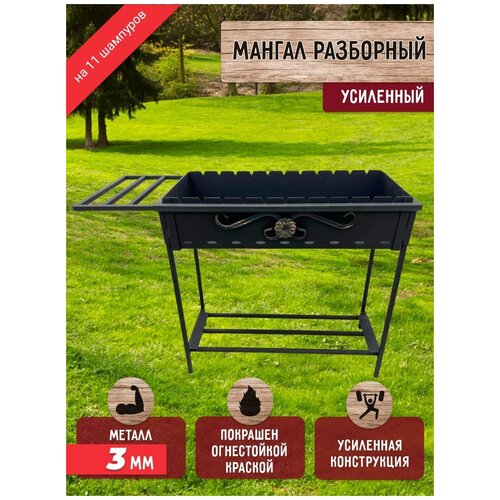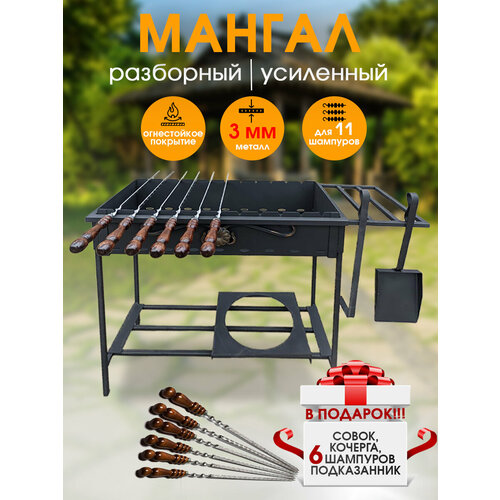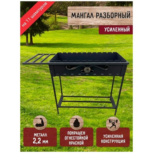 Цены на Мангал разборный, усиленный 2,2 мм. с подказанником, совком и кочергой черный в г. Москва