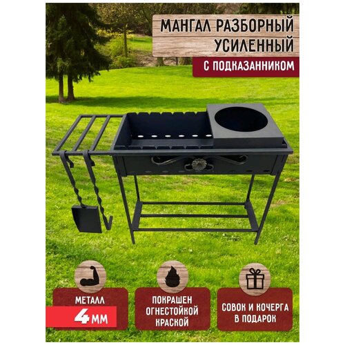 Мангал разборный, усиленный 4мм с подказанником, совком и кочергой