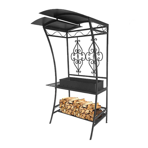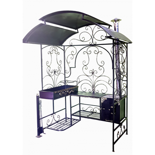 Мангал DECOR "Барокко", с крышей, для дачи, высота 205см, ширина 95см