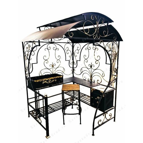 Кованый мангал с крышей "монарх" с полками