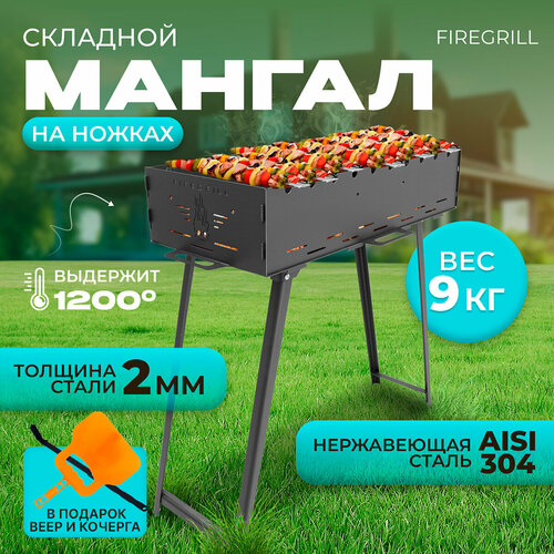 Мангал FIREGRILL с ножками, складной, сборно-разборный, многоразовый, 2 мм толщина стали+веер и кочерга в подарок
