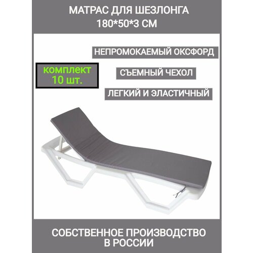 Матрас для шезлонга Комплект 10 шт, серый, коврик для пляжа, 180*50*1 см, водонепроницаемый, Чудо Кресло, Оксфорд, односекционный